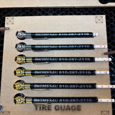 Our signs are made using either a commercial laser engraver for the organic materials (leather, wood, cork, slate, etc) or a CNC plasma table for steel.